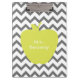 A gift for teachers featuring an illustration of a neon apple over a grey and white chevron background.  Personalize with your name on apple.