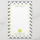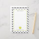Stationery for teachers featuring an illustration of a neon yellow apple at bottom. Border is grey chevron design. Personalize the name.