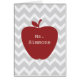 A gift for teachers featuring an illustration of a red apple over a grey chevron background. Personalize with your name on apple.