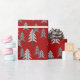 Grey Christmas trees pine RED custom background Wrapping Paper