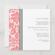 Elegant wedding vow renewal invitations in chic and elegant peach orange pink, charcoal dark grey and white classic vintage damask floral pattern with fully customizable text to include your vow renewal ceremony details. Contact us for a custom colour.