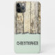 Grey cream and green rustic faux wood add name Case-Mate iPhone case