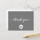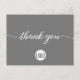 The postcard features a printed modern "thank you" script with long-tailed embellishments, adding a touch of elegance to the design. The grey and white colour scheme gives it a sleek and professional look, making it suitable for any business or industry.