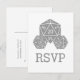 Did meeting your future spouse and everything leading up to your engagement feel like you rolled a twenty? If so, this geeky chic D20 Dice Wedding Response Postcard design is perfect for you! Featuring a bigger twenty-sided D20 die and two smaller dice flanking it, this elegant yet nerdy RSVP postcard in charcoal grey is easy to customize with your wedding details. Click "Customize It" to find more personalization options.