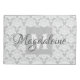 This beautiful pillow case features a classic white damask pattern over a grey background. The design is personalized with a monogram initial letter as well as a customizable name. Perfect for decorating any bedroom, apartment or dorm room. Great gift for a girl going off to college who wants a classic yet elegant style on her bed.