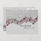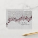 This save the date postcard features an elegant design of grey damask and sparkling red musical notes. Very festive!