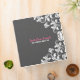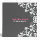 Elegant grey damasks background and white vintage floral lace, customizable binder template