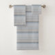 Grey- blue stripes featuring a trendy colour in 2020 called " faded denim " .Unique towel set design with horizontal stripes inspired by art-deco . Originally Alma Wad . Trendy gift for him .Personalize it with his initials .Just hit the Add text tab now.