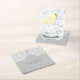Simple and sophisticated Elegant Lace Wedding Paper Coasters featuring a white lace doily motif on a light grey faux vintage paper background. These classic and stylish coasters are perfect for a rustic wedding. Easy to customize with your wedding details. Click "Customize It" to find more personalization options.