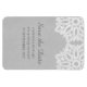 Simple and sophisticated Elegant Lace Save the Date Premium Flexi Magnet featuring a white lace doily motif on a light grey faux vintage paper background. This classic and stylish magnet is perfect for announcing a rustic wedding. Easy to customize with your wedding details. Click "Customize It" to find more personalization options.