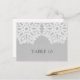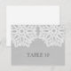 Simple and sophisticated Elegant Lace Wedding Table Number Postcard featuring a white lace doily motif on a light grey faux vintage paper background. This classic and stylish table card is perfect for a rustic wedding. Easy to customize with the appropriate table number(s). Click "Customize It" to find more personalization options.