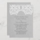 Timeless romance meets delicate detail in Grey Elegant Lace Wedding Invitation, designed for couples who adore a vintage theme with a touch of refined charm. Featuring intricate lace doilies layered over a subtle paper texture background, this design evokes the beauty of heirloom stationery and classic love stories. The elegant layout gracefully balances elegant script with clean type, highlighting the names of the bride and groom and your most important wedding details. Perfect for those seeking a soft, sophisticated feel, this piece is a lovely addition to any lace theme wedding stationery collection. A true keepsake, this vintage wedding design blends tradition and style—making it the perfect first impression for your unforgettable day.