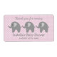 Cute grey elephant baby shower water bottle stickers. Custom babyshower water bottle labels with zoo animal design and polka dots background. Personalized elegant DIY waterbottle sticker template. Stylish script typography for name and birth date of baby girl or boy. Use as classy table decoration or thank you for coming party favour for guests. Gender neutral design with customizable background colour. ie pastel blue, pink or soft yellow.