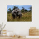 Sunny blue skies, grassland and close up of stately grey Elephant.