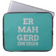 Dorky and fun typography text design Laptop Sleeve featuring a word from the popular meme of Ermahgerd. Ermahgerd is a very obnoxious and lisped way to say "Oh my God!" Customize with your own text and background colour. Use an ermahgerd translator such as this one [http://ermahgerd.jmillerdesign.com/#!/translate] to make your personalized text even more silly!