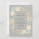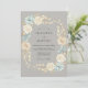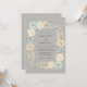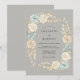 This design features a sophisticated aesthetic with a neutral backdrop. A palette of dove grey, icy blue, and warm cream creates a refined and tranquil atmosphere. Delicate cream roses are paired with soft blue hydrangeas and dusty gold eucalyptus leaves arranged in a graceful botanical border. This watercolor artwork evokes the quiet beauty of a snowy landscape.