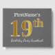This guest book design features the ordinal number "19th" with a faux/imitation gold-like appearance. It also features a customized name, and a grey (grey) coloured background. It could be used at a birthday party for somebody who is celebrating their nineteenth birthday. [~Z0000193]