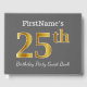 This guest book design features the ordinal number "25th" with a faux/imitation gold-like appearance. It also features a personalized name, and a grey (grey) coloured background. It could be used at a birthday party for somebody who is celebrating their twenty fifth birthday. [~Z0000193]