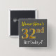 Grey, Faux Gold 32nd Birthday, With Custom Name 2 Inch Square Button