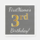 Grey, Faux Gold 3rd Birthday + Custom Name Napkin