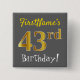 Grey, Faux Gold 43rd Birthday, With Custom Name 2 Inch Square Button