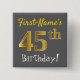 Grey, Faux Gold 45th Birthday, With Custom Name 2 Inch Square Button