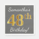 Grey, Faux Gold 48th Birthday + Custom Name Napkin
