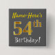 Grey, Faux Gold 54th Birthday, With Custom Name 2 Inch Square Button