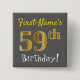 Grey, Faux Gold 59th Birthday, With Custom Name 2 Inch Square Button
