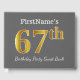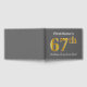 This guest book design features the ordinal number "67th" with a faux/imitation gold-like appearance. It also features a personalized name, and a grey (grey) coloured background. It could be used at a birthday party for somebody who is celebrating their sixty seventh birthday. [~Z0000193]