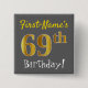 Grey, Faux Gold 69th Birthday, With Custom Name 2 Inch Square Button