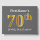 This guest book design features the ordinal number "70th" with a faux/imitation gold-like appearance. It also features a customized name, and a grey (grey) coloured background. It could be used at a birthday party for somebody who is celebrating their seventieth birthday. [~Z0000193]