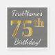Grey, Faux Gold 75th Birthday + Custom Name Napkin