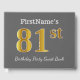 This guest book design features the ordinal number "81st" with a faux/imitation gold-like appearance. It also features a customized name, and a grey (grey) coloured background. It could be used at a birthday party for somebody who is celebrating their eighty first birthday. [~Z0000193]