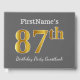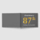 This guest book design features the ordinal number "87th" with a faux/imitation gold-like appearance. It also features a customized name, and a grey (grey) coloured background. It could be used at a birthday party for somebody who is celebrating their eighty seventh birthday. [~Z0000193]