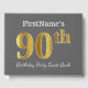 This guest book design features the ordinal number "90th" with a faux/imitation gold-like appearance. It also features a customized name, and a grey (grey) coloured background. It could be used at a birthday party for somebody who is celebrating their ninetieth birthday. [~Z0000193]