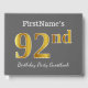 This guest book design features the ordinal number "92nd" with a faux/imitation gold-like appearance. It also features a customized name, and a grey (grey) coloured background. It could be used at a birthday party for somebody who is celebrating their ninety second birthday. [~Z0000193]