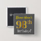 Grey, Faux Gold 98th Birthday, With Custom Name 2 Inch Square Button