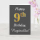 This simple birthday card design features the message "Happy 9th Birthday", with the "9th" having a faux gold-like appearance. It also features a custom name, and a grey background. It could be given to somebody who is celebrating their ninth birthday.