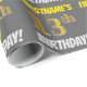 This wrapping paper design features a message like "FIRSTNAME’S 13th BIRTHDAY!", with the "13th" having a faux/imitation gold-like colour appearance, and with the name and "BIRTHDAY" in a fun, bold font. The name can be customized, and the background is coloured grey (grey). Wrapping paper like this could perhaps be used when wrapping birthday gifts being given to somebody in celebration of their thirteenth birthday. [~Z0000211]