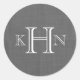 Cute Modern Girly Trendy Chic Stylish Round Sticker with Grey faux burlap canvas texture with Custom Personalized Monogram Initial. Click the Customize It button to add your own custom text, change fonts and create your own unique one of a kind label design.