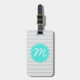 Grey Fine Stripe with Turquoise Monogram Luggage Tag