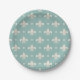 Grey Fleur De Lis pattern on turquoise background Paper Plate