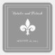 Elegant and simple Wedding sticker featuring a fleur de lis against a Grey background. This design is a unique choice for a modern wedding. Easy to customize with your wedding details. Click "Customize It" to find more personalization options.