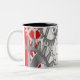 Grey gears on a red background Two-Tone coffee mug
