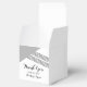 Modern and trendy Geometric Stripe Wedding Favour Boxes with a grey triangle and thinly striped accent. These simple yet elegant boxes are set up to be easily customized with your wedding information. Find more customization options by clicking Customize It.