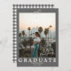Grey Gingham White Bow Aesthetic Coquette Photo Graduation Announcement with a ginham pattern on the back.