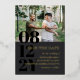 Elegant typography wedding save the date in charcoal grey with your wedding date in large black numbers down the side of the save the date. Add names and details in gold foil. Gold foil and dark grey wedding save the date with photo.