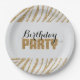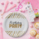 Grey Gold Zebra Print Faux Glitter Birthday Paper Plate