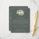 A dark grey green flat wedding enclosure card for wedding travel information or for directions if your reception is at a different venue. Featuring a bouquet/posy of hand painted snowberries and eucalyptus on the front and a wreath on the back of the card. All text is fully editable and the scattered dots on the front and back can be deleted before ordering if you would prefer. This card is available with alternative botanical designs, in a landscape format, and in different colours. Please view the Collection in my store to see all options and coordinating items.